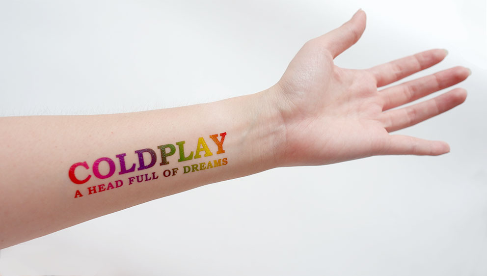 Buy Coldplay AHFOD temporary tattoo here and also watch how the tattoo comes to live using our mobile app